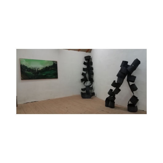 große Objekte Daniel Erfle - 2 Hochformate Heiko Herrmann - Bilder auf Paper Dieter Krieg - kleine Objekte Rennertz - Querformate Gabi Streile